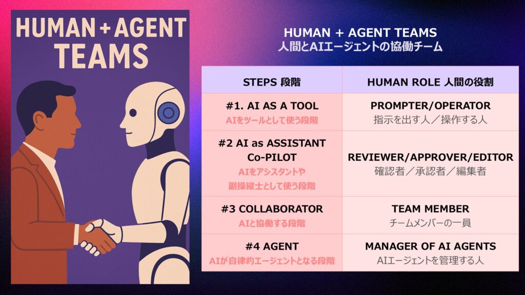 AIが文章作成やプログラミングなどの知的作業まで担えるようになった今、人間の仕事は単純労働にとどまらず、認知労働の領域でもAIと交わり始めている。テイビス氏は、人間とAIが互いの強みを活かして協働する「hybrid workplace(ハイブリッド職場)」がすでに始まっていることを強調した。 こうした環境では、マネジメント層は人間とAIの双方をチームメンバーと捉え、それぞれの役割を適切に組み合わせるリーダーシップが求められる。