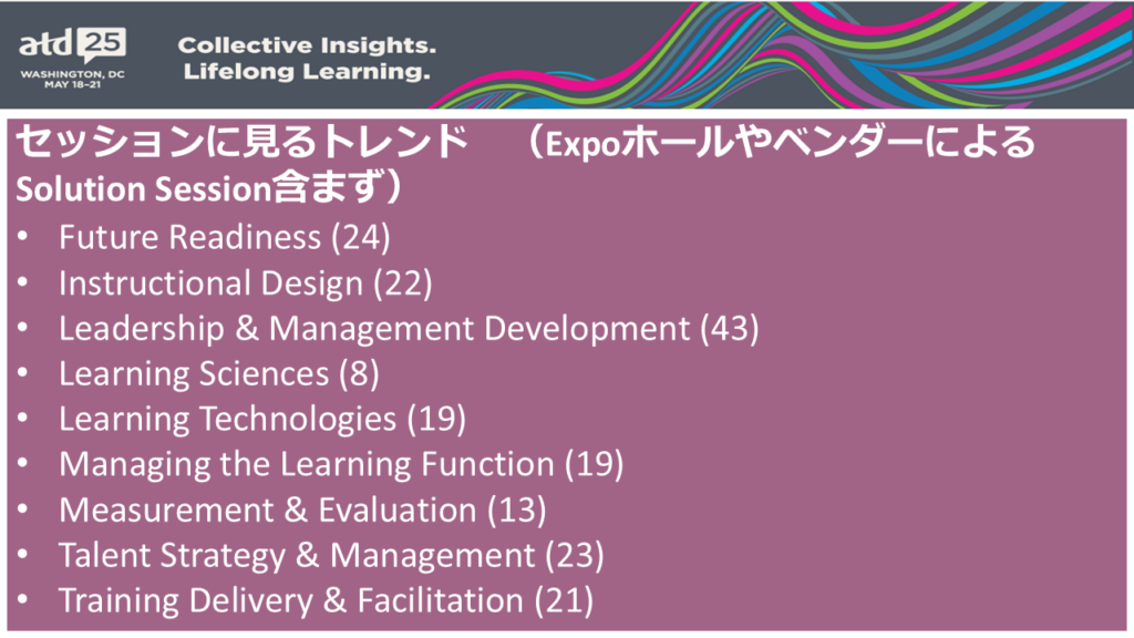 ATDではセッションごとに一貫したテーマ設計がなされており、今年は「Future Readiness」「Leadership Development」「AI」「Empathy」などが注力分野として打ち出されていました(図6)。