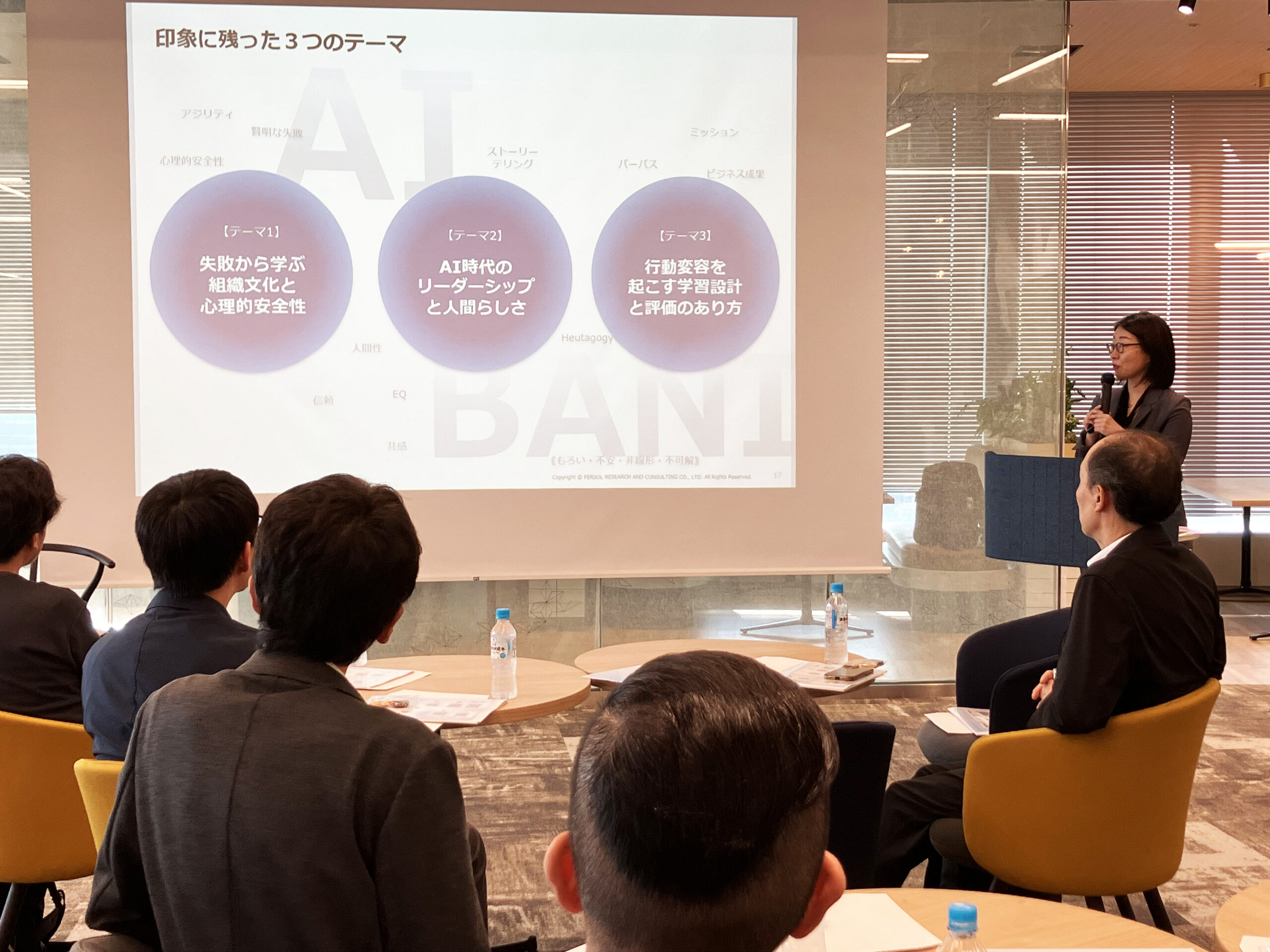 AIの台頭、BANI(壊れやすく、不安で、複雑で、理解しづらい)な時代において、どのような学びや支援が求められるのか。パーソル総合研究所の那須は、現地で感じたインサイトを3つの視点に整理し、報告しました。