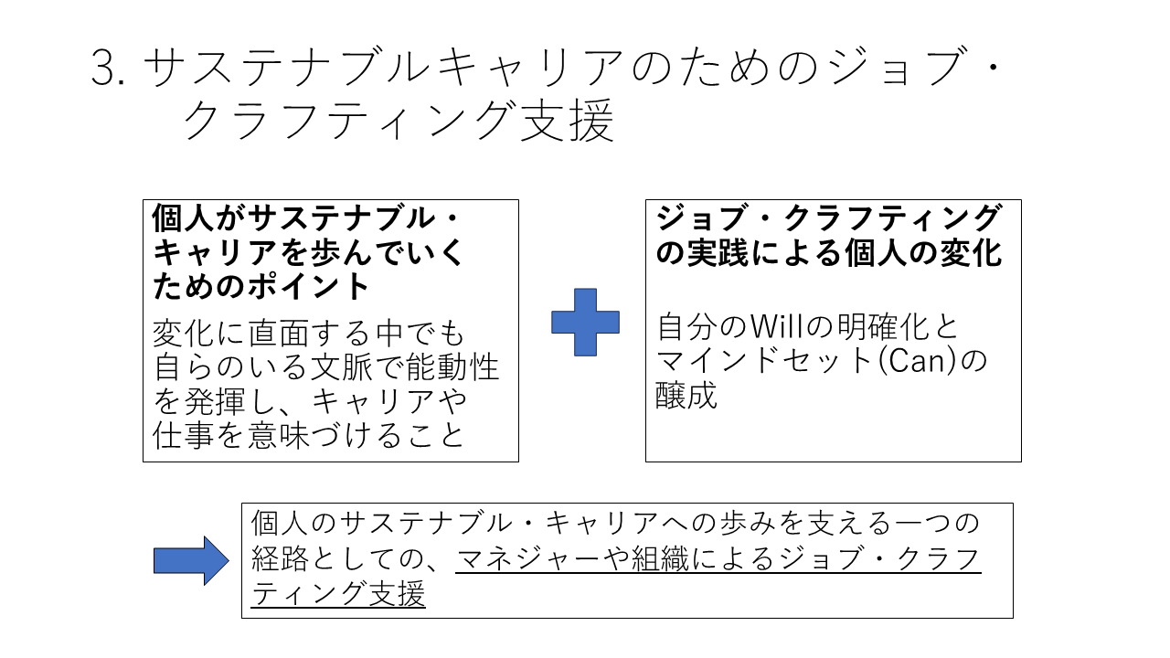 では、マネジャーやHRMがサステナブル・キャリアの視点でジョブ・クラフティングを支援していくには、どのような方法があるのだろうか。