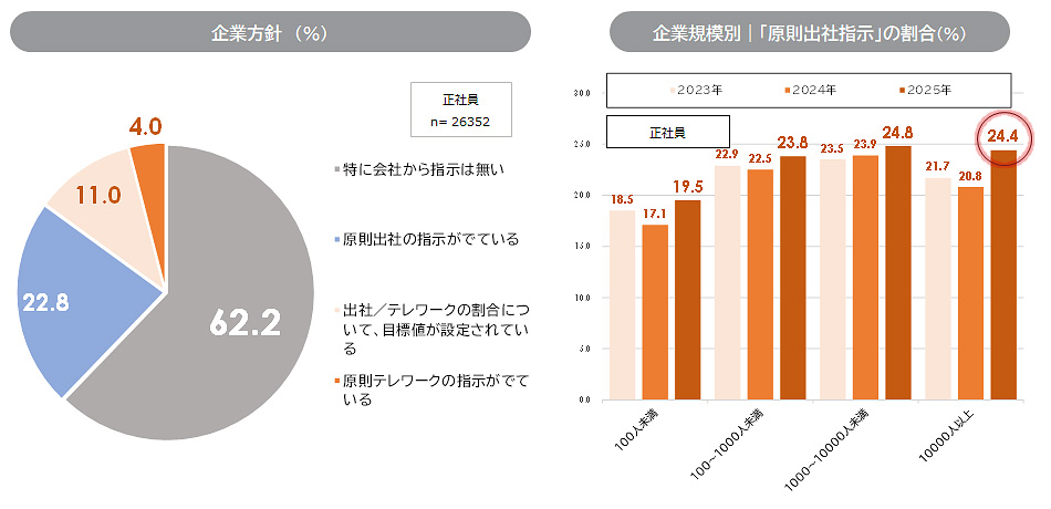 実施率は22.5%で横ばい、継続希望は過去最高の82.2% 大手企業では「原則出社」方針が増加、実施率は前年比3.6ポイント減