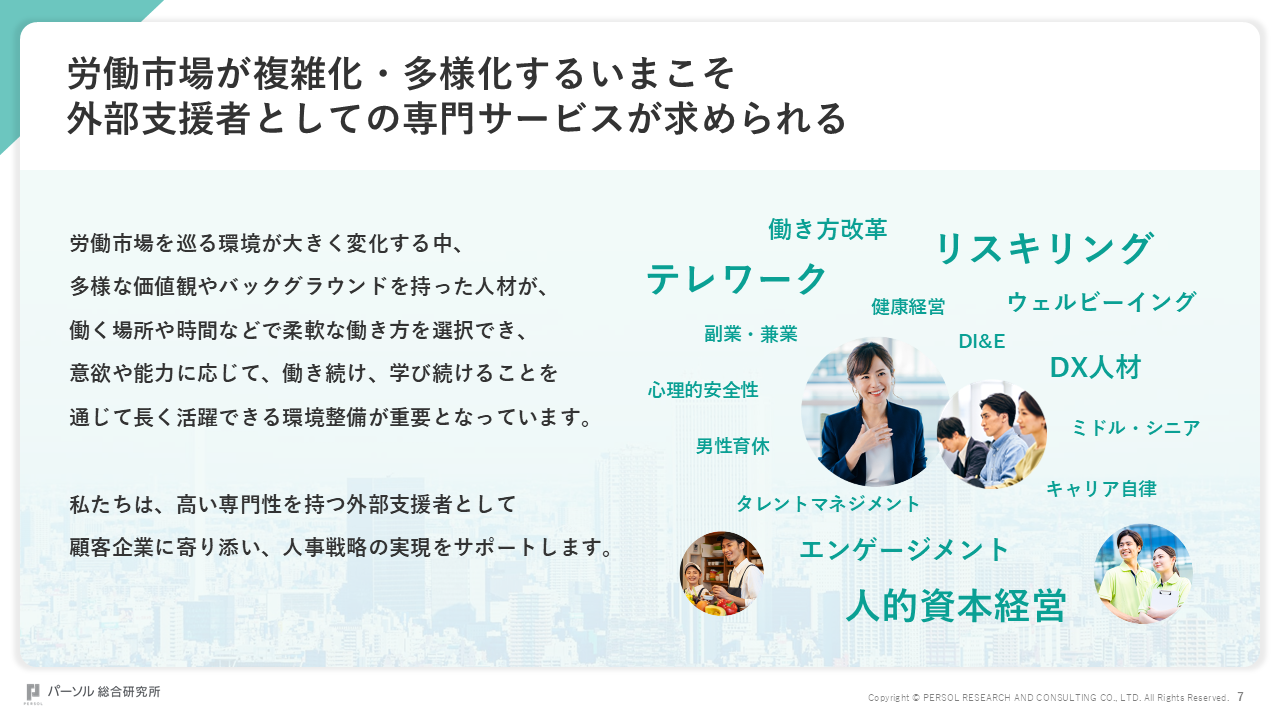 人材マネジメントの進化をリードし、挑戦が育まれる社会を創造します。
