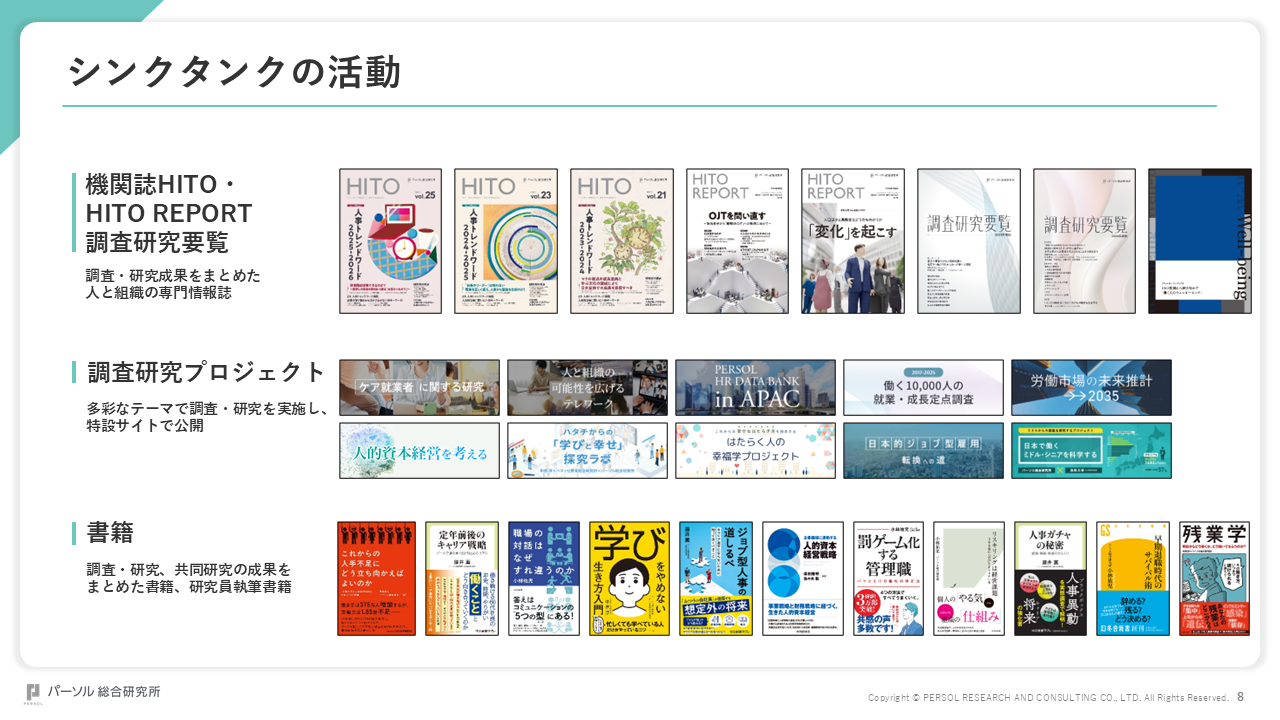 人と組織に関する問題を研究し、機関誌やイベント、またメディアを通じて発信しています。