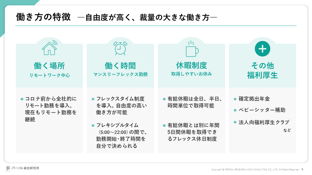 パーソル総合研究所の社風や制度、福利厚生、オフィスの様子をご紹介します。