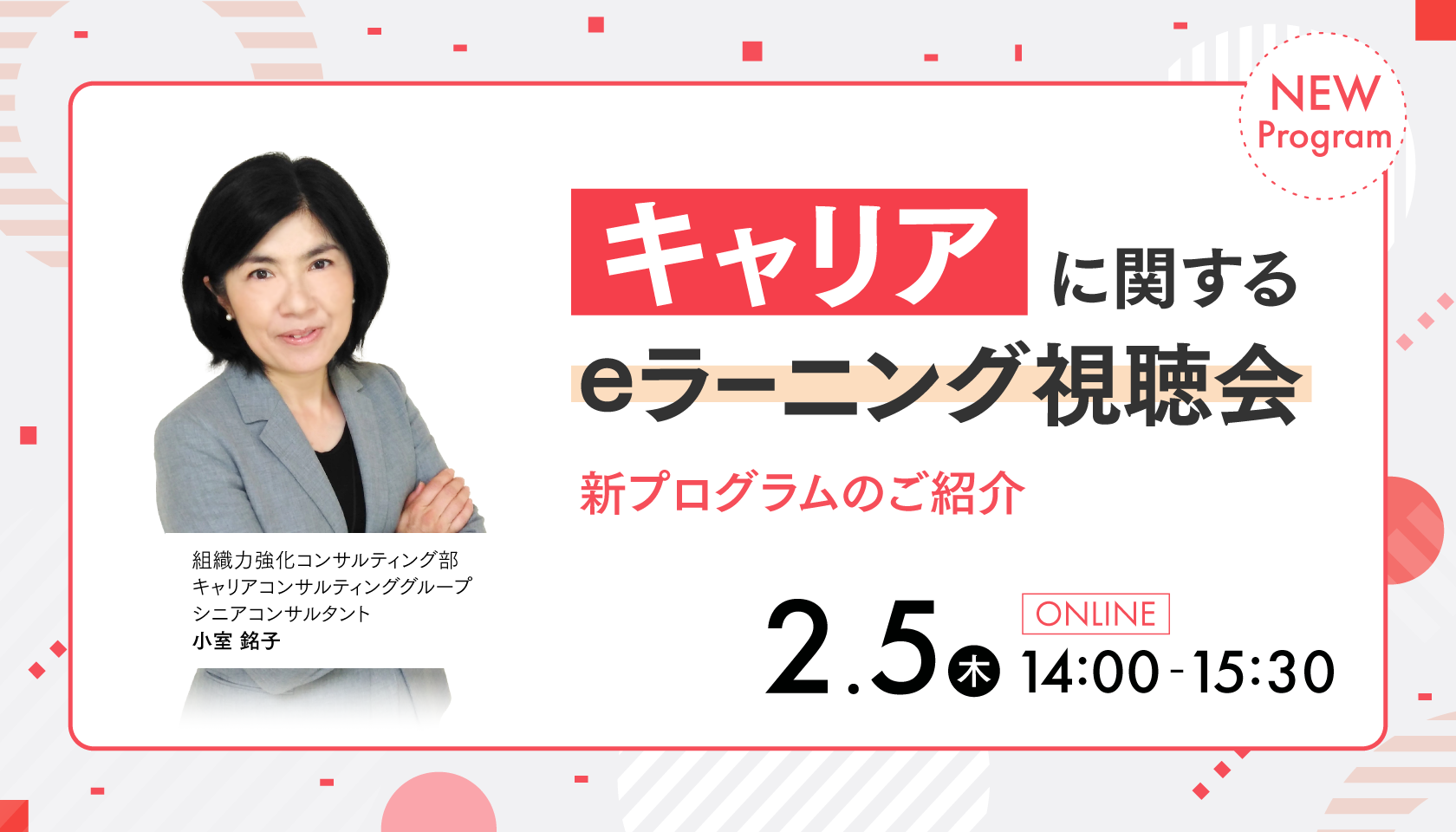 | 対象 | ・企業の人事・人材開発部門の責任者・担当者(1社2名様まで) |
