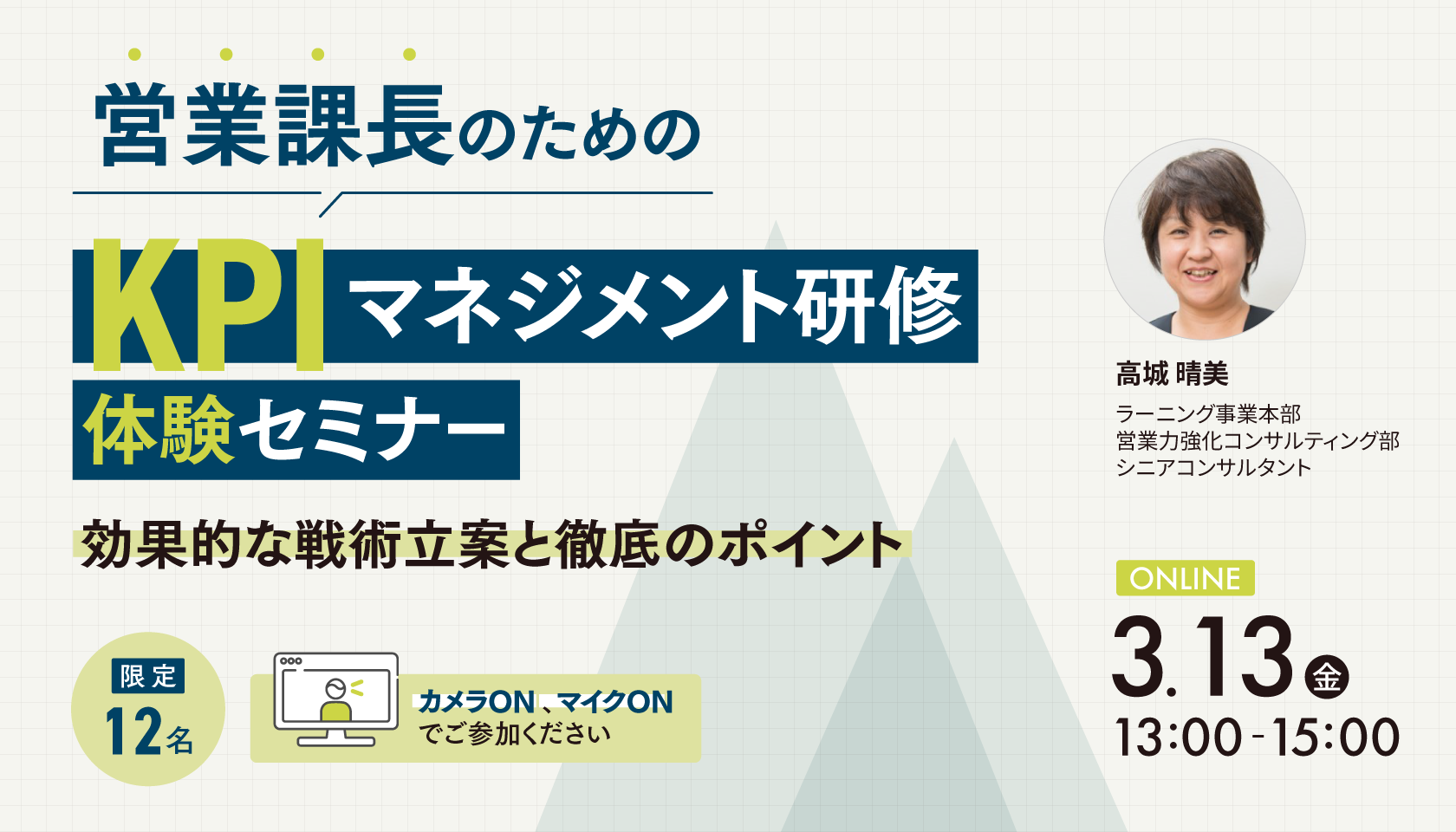 営業マネジメント強化研修をご検討の皆様にお役立ていただけます。ぜひ、ご参加ください。