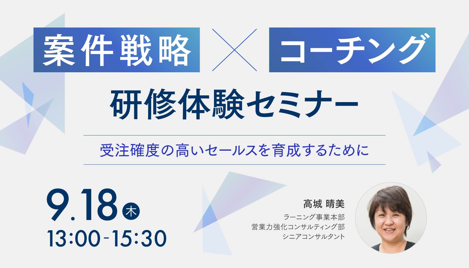 本セミナーでは、「案件戦略研修」の内容と一部の演習を体験いただけます。本研修は、案件戦略を共通言語として実践できるように、セールス版とマネジャー版(コーチング)をご用意しています。