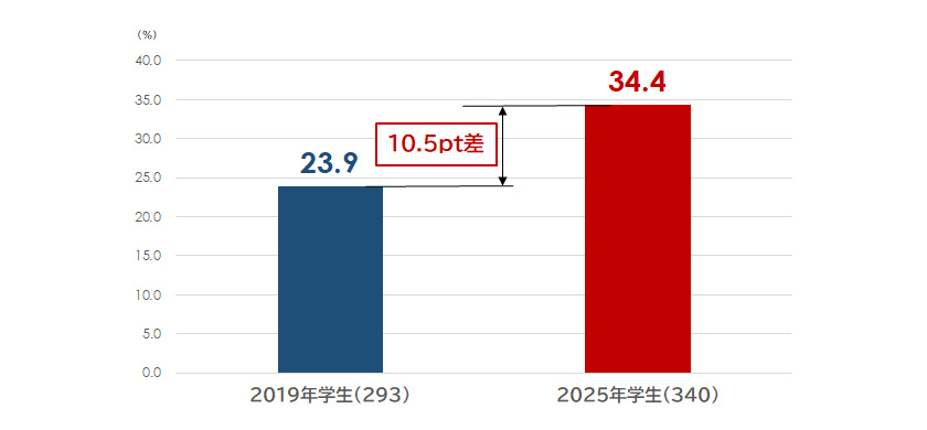 なお、本コラムで参照する調査は、2019年と2025年のそれぞれ2月下旬に実施したもので、学生だけではなく社会人も対象としているが、ここでは学生の分析結果のみ取り上げる※2。主に2025年調査の結果を参照するが、必要に応じて2019年調査の結果にも言及する。