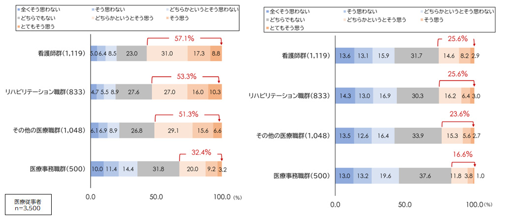 では、報酬への不満が強い中で、医療従事者は何をモチベーションとして働いているのか。調査からは、「やりがい」に対する興味深い結果が得られた。