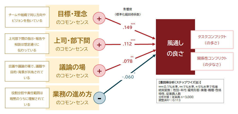 一方で、「業務の進め方」に関するコモン・センスは、風通しの良さをむしろ下げる傾向が確認された。
