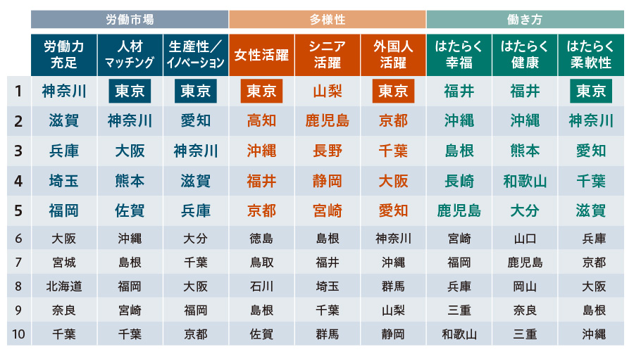 ――われわれの調査では、イノベーションや生産性、女性や外国人の活躍、働き方の柔軟性といった指標は軒並み東京都が1位である一方、東京の働くことを通じた幸福度を示す「はたらく幸福」などは低位にとどまりました(図表1)。この乖離はなぜ生じるのでしょうか。