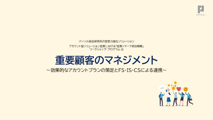 アカウントプランは、重要顧客について自社としてどのように対応していくのか、という全体的な戦略です。フィールドセールスのためだけでなく、インサイドセールスやカスタマーサクセスとの連携を強化するうえでも有効です。本資料では、効果的なアカウントプラン策定のためのワークショップ・プログラムをご紹介します。